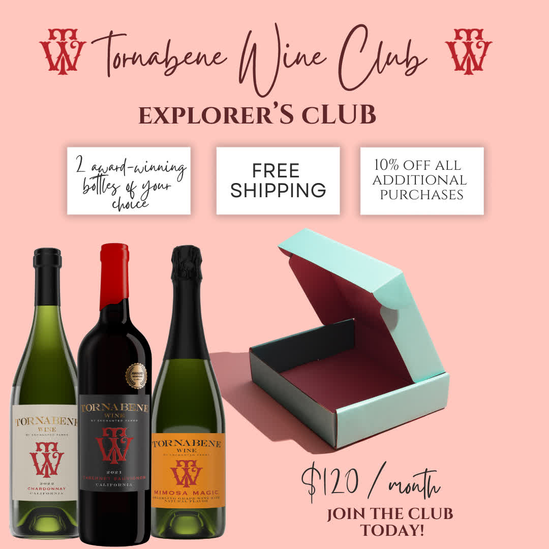 Includes: Your choice of 2 bottles of Tornabene Wine each month.